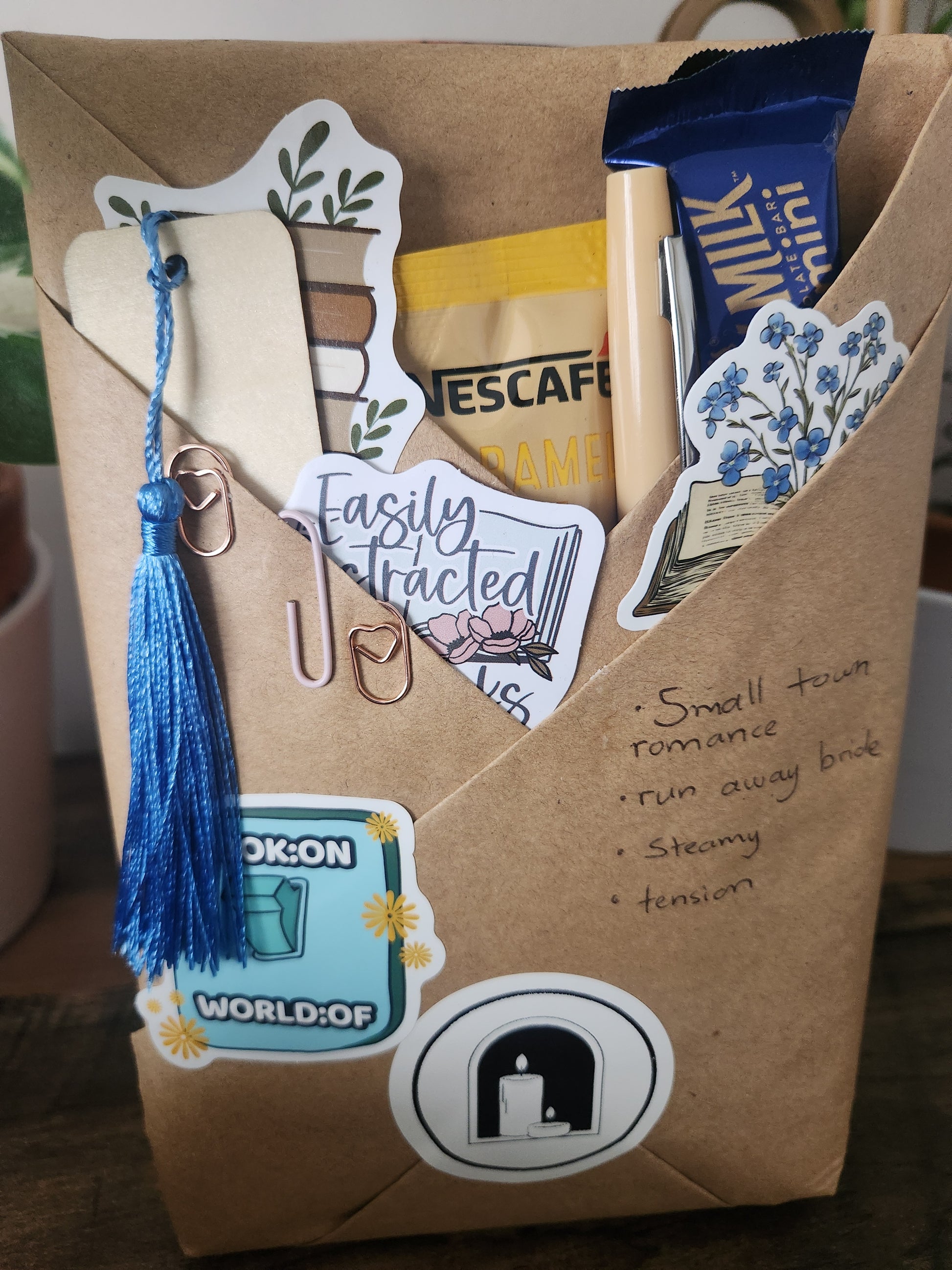 Our blind date bundles come with a randomly chosen book from a couple genre options.