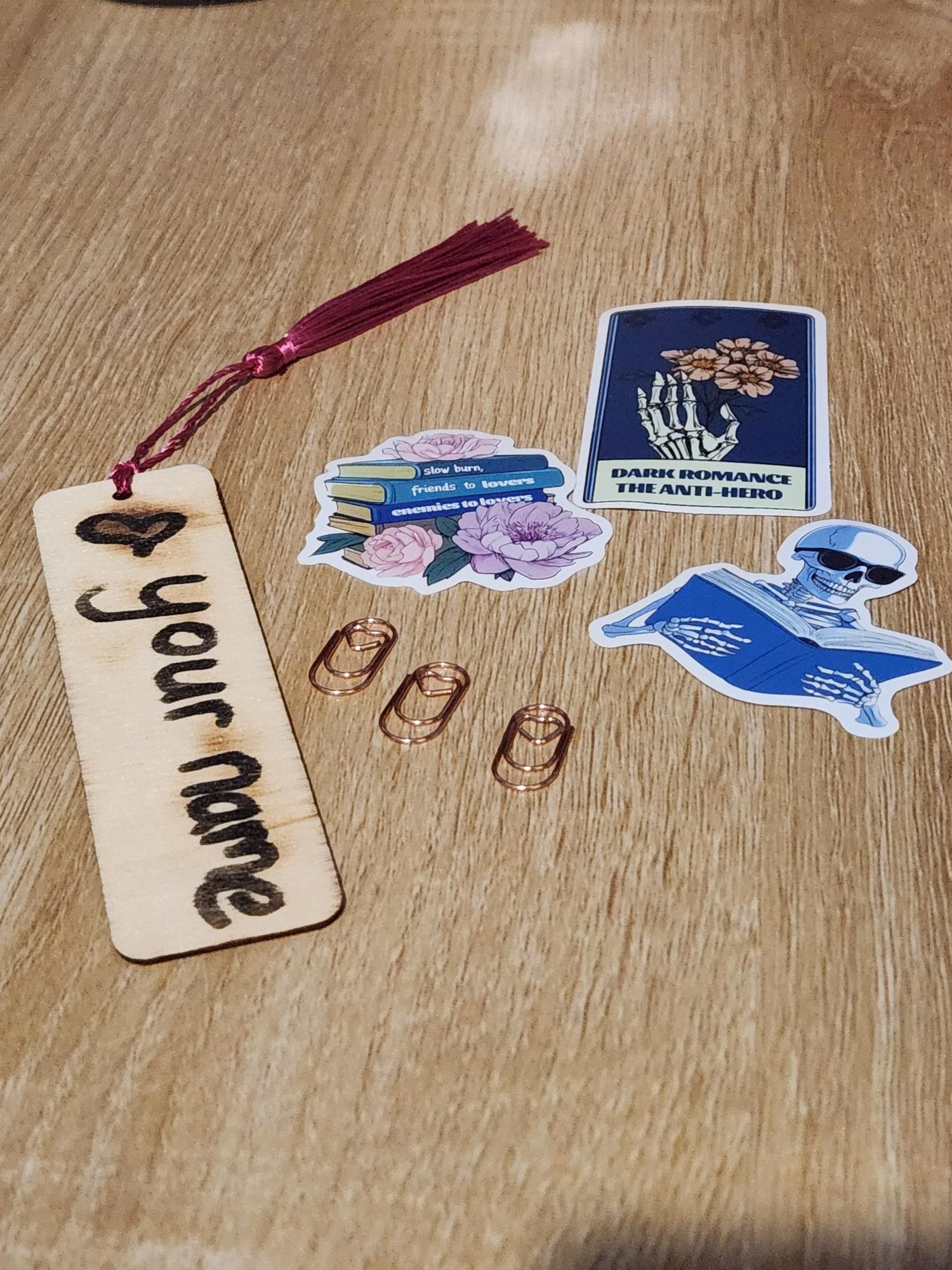 As well as a bookmark, 3 rose gold paper clips, a selection of stickers, a pen, a snack, a hot drink aaaand a random 200ml candle from our range.
