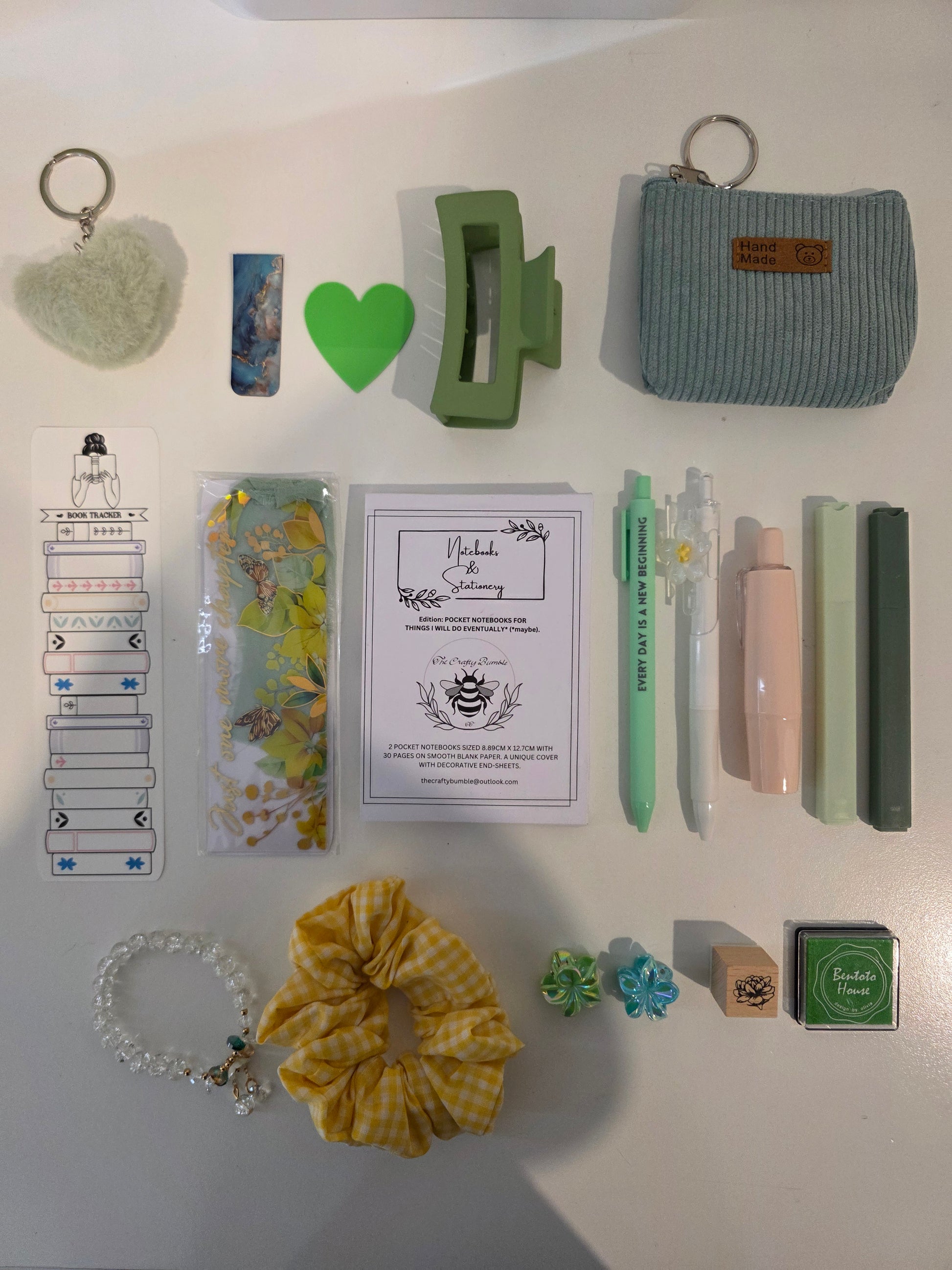 Each set features a range of super cute stationary including locally handmade pocket notebooks, book trackers and acrylic bookmarks made by the incredibly talented The Crafty Bumble. A stunning company based in Wellington specialized in making hand made items.