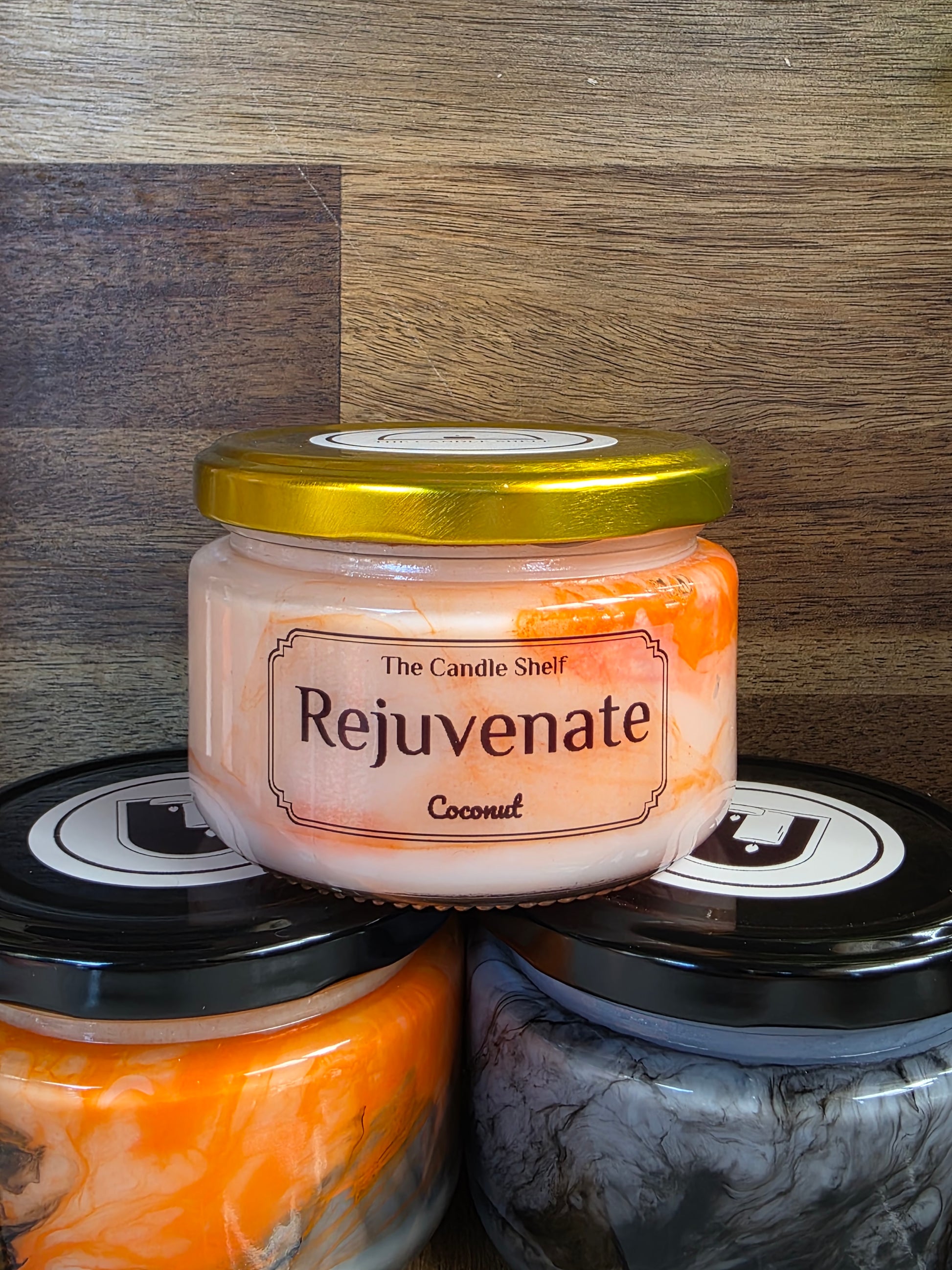 Rejuvenate is scented with Coconut. This is a gently scented candle that smells refreshing and tropical. Perfect for a few hours in the spa tub or a bubble bath.